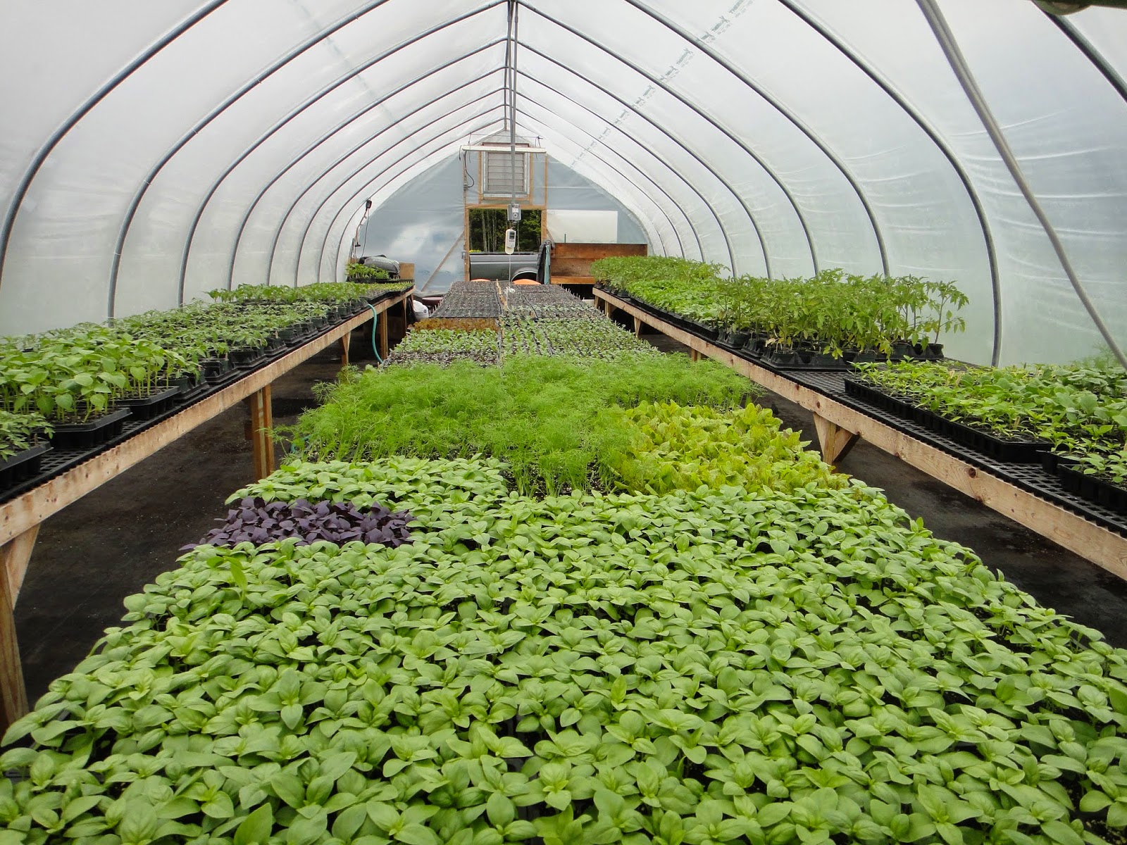The greenhouse is SO FULL, there is barely room to work. Most of these crops are warm weather plants, just waiting for the temperatures to settle. (It was 28 here last night!) I have lots of crops in the ground, but luckily they are all cold tolerant and I was not lured into planting warm season crops when we had those few 80 degree days. Come the first two weeks of June, all of these flats will be acclimated to the wind and cooler nights and it will be time to get them in the ground! If anyone has a couple hours to spare during the day, during the week, I am sure I could put you to work!