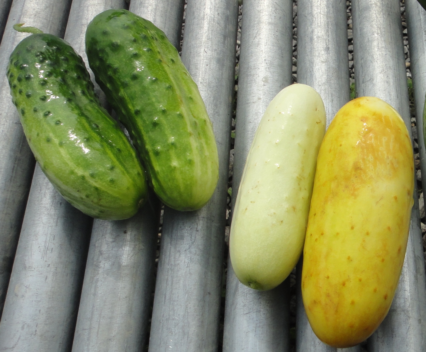 Most of the cukes I grow are pickling cucumbers.  There may be a crate out containing two longer (one real long and one sort of long) that are not–but it should be obvious.