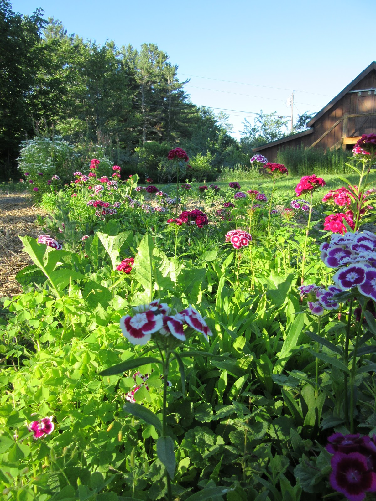 The dianthus and the tall flower in the background are presently the best picking. Below is a photo showing the proper way to cut flowers. We try and grow “long stemmed” flowers, but some are naturally shorter. If you cut too low, you will kill the plant.
