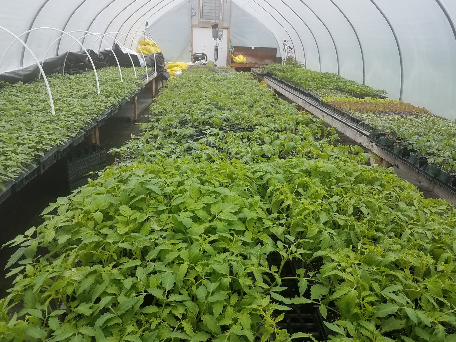 The greenhouse is BUSTING at the seams and looking lively. LOADS of planting to be done in the next couple of weeks … just need to get the fields dry enough to prep!!